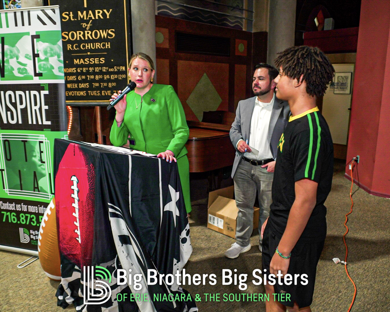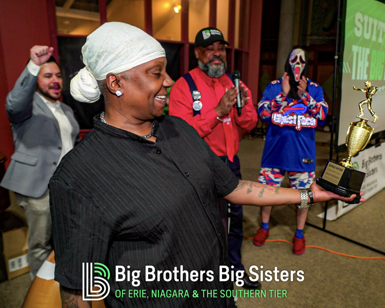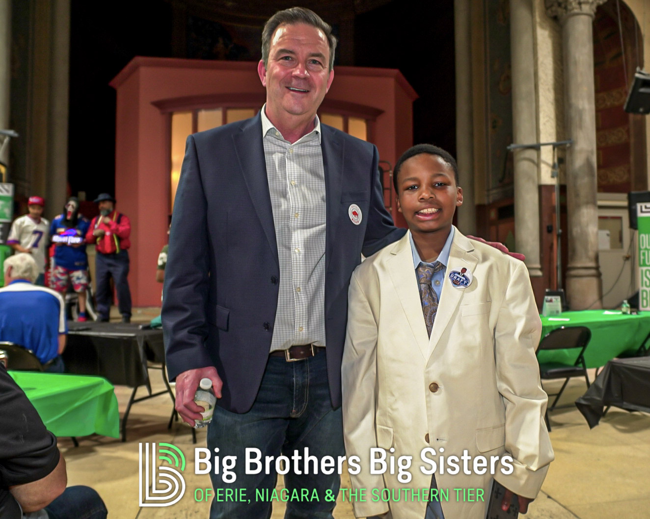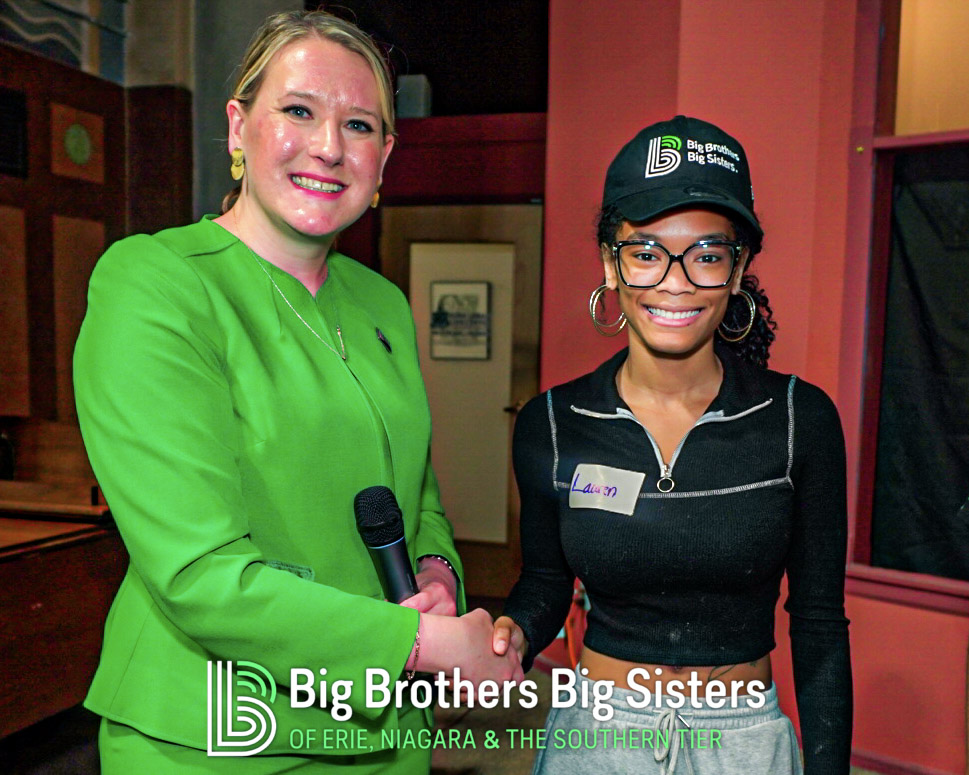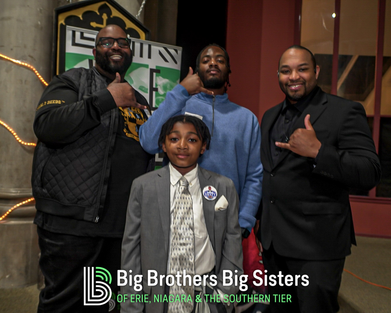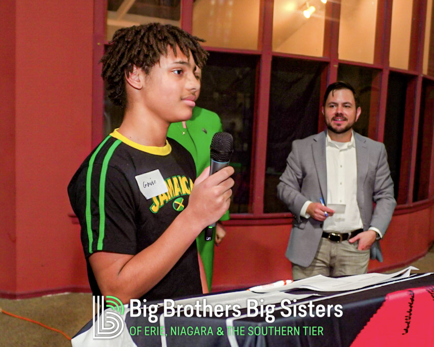 BIG thanks to everyone who made this two-day experience unforgettable: St. Brian Clothiers for styling our Littles, The Buffalo Mafioso and Buffalo Ghostface for bringing out the fan energy, and King Urban Life Center for hosting us in their beautiful, historic space. D Real McCoy (Devon McCune) handled our A/V like a pro, Jonathan Zelasko of The Vintage Raider 716 brought out some awesome vintage Bills gear to give away, and our friends at The Challenger, Legendary Mix 1080 WUFO, Power 96.5, and WUFO’s Muki Hawkins who helped spread the word about the events. We’re grateful for every person and partner who showed up, suited up, and helped bolster our team and change the lives of many Littles waiting for a Big.